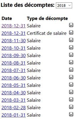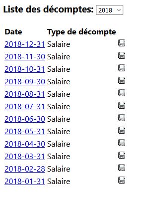 4. Pour accéder à vos fiches de salaire et certificat de salaire annuel, cliquer sur « Liste des décomptes » ensuite sélectionner l’année désirée.