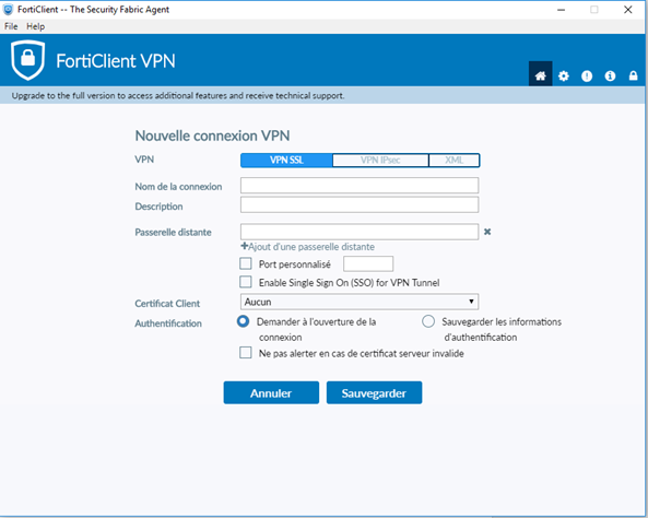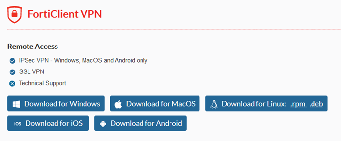 • Sur la page affichée, descendre jusqu’à la section « FortiClient VPN »:
