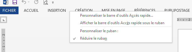 Barre d’outil Word, Excel, Powerpoint disparaît Created 27 novembre 2015 Author admin Category Excel, Microsoft Office, Outlook, Powerpoint, Word Il arrive que la barre d’outil disparaisse automatiquement dans la suite office (Word, Excel, etc..) Pour la faire réapparaitre, il suffit de: Faire un clic droit entre 2 titres de la barre d’outil et enlever la coche dans « Réduire le ruban » Was this article helpful? Yes No