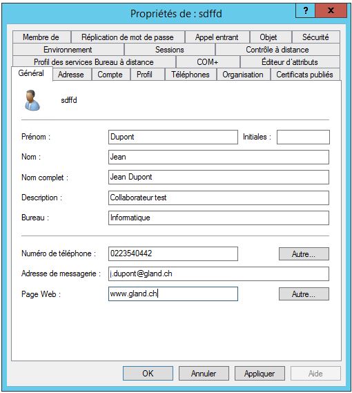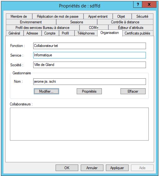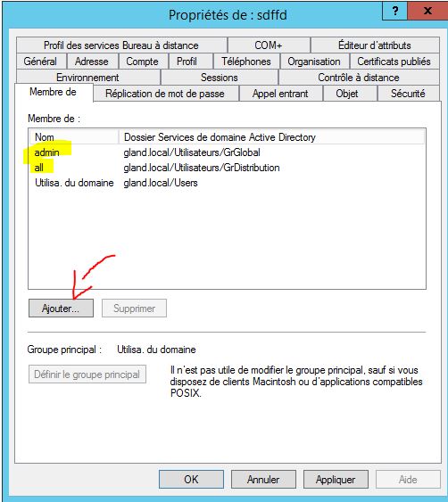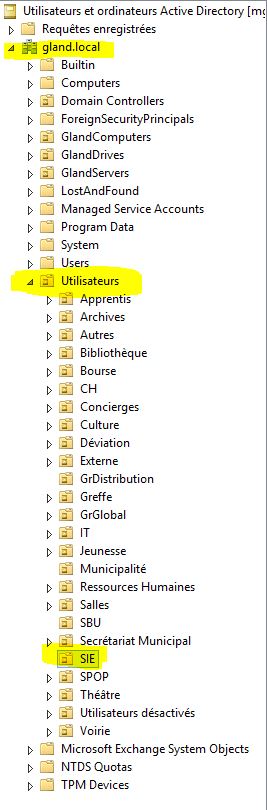 - Allez ensuite dans le dossier correspondant au service du nouveau collaborateur (gland.local – utilisateur – choix du dossier)