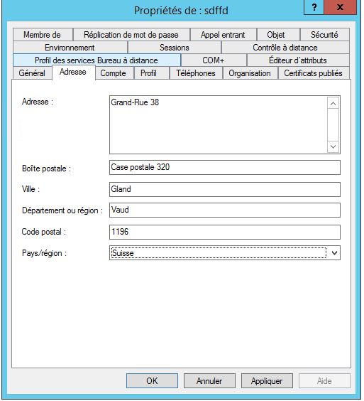 - Remplissez les champs, prénom + nom et sous « nom de l’ouverture de session de l’utilisateur » mettez la 1ère lettre du prénom suivie d’un point et le nom de famille, exemple: (j.dupont)