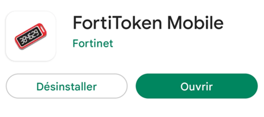 2. Avec son smartphone, se rendre sur Google Play Store et installer l’application « FortiToken Mobile »:
