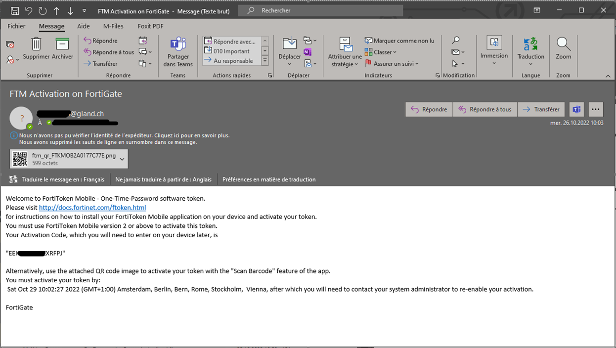 1. Après en avoir été informé par l’Office informatique puis avoir reçu le courriel suivant: