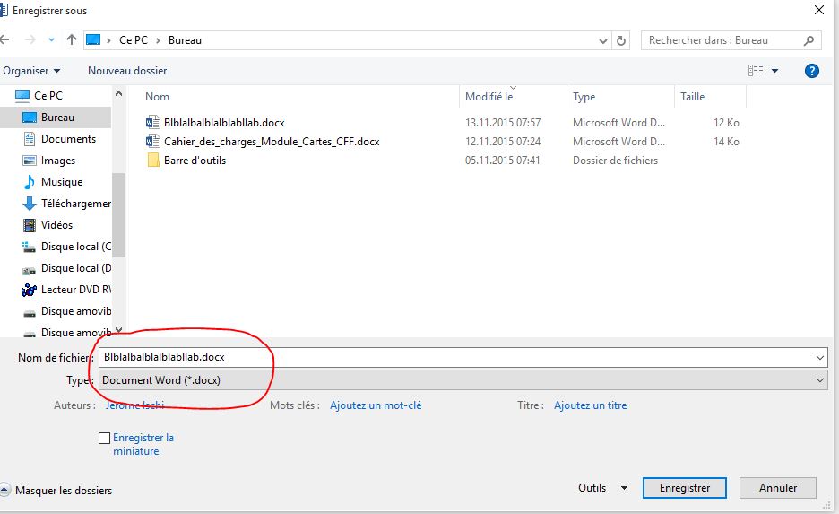 - Nommez votre fichier comme vous le désirez et ne cliquez pas tout de suite sur enregistrer!
