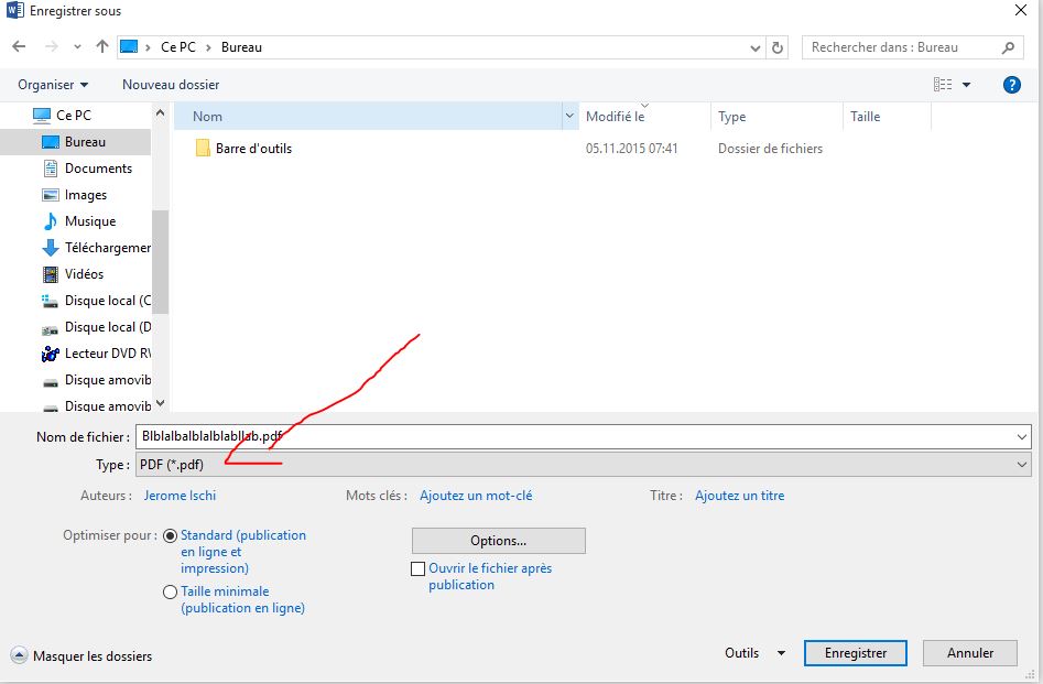 - Sélectionnez le format .pdf puis cliquez sur « enregistrer »