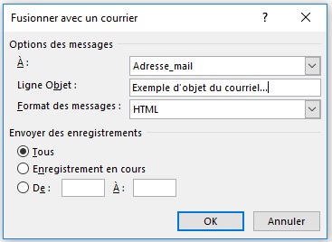 L’envoi de courriels en nombre peut être réalisé dans Word avec l’outil de mailing associant des adresses courriels enregistrées dans un fichier Excel.